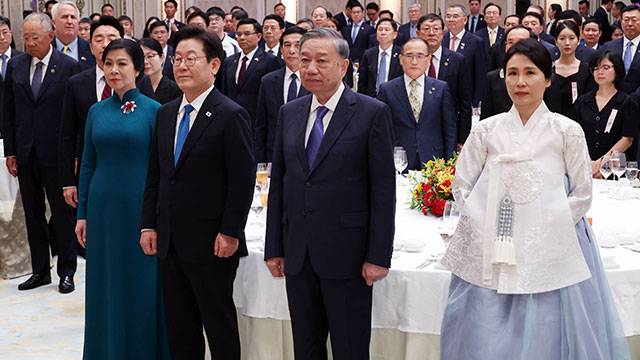 이 대통령은 오늘(11일) 청와대 영빈관에서 열린 또 럼 베트남 당서기장 국빈만찬에서 “올해는 한국의 광복과 베트남 독립 80주년을 맞는 의미있는 해”라며 “역사의 고비와 역경을 극복해 온 양국은 국제 평화와 안정을 그 무엇보다 중시하고 있다”고 밝혔습니다.