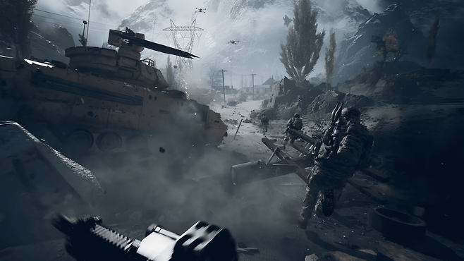 마지막으로 눈에 띄는 건 파괴 요소다. 건물 외벽이나 방벽을 폭파해 새로운 경로를 만들거나 적의 엄폐를 무너뜨릴 수 있다. 이는 배드 컴퍼니2부터 이어온 시리즈 전통을 한층 발전시킨 모습이다. 지형 변화가 전투 양상에 직접적인 영향을 미치며 전략의 깊이를 더한다.