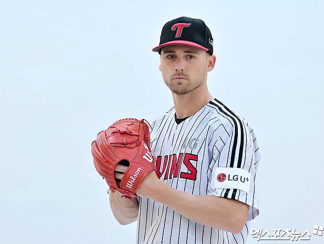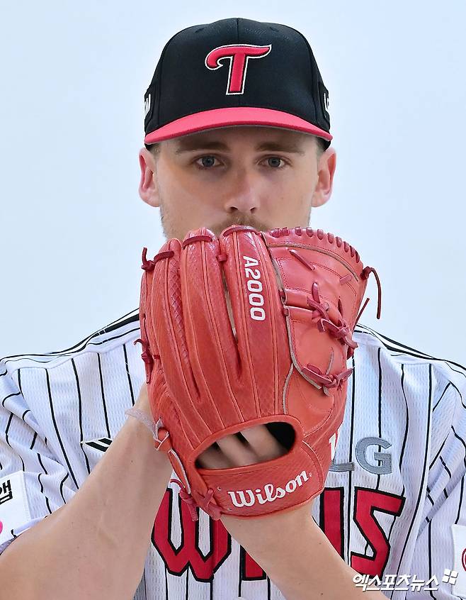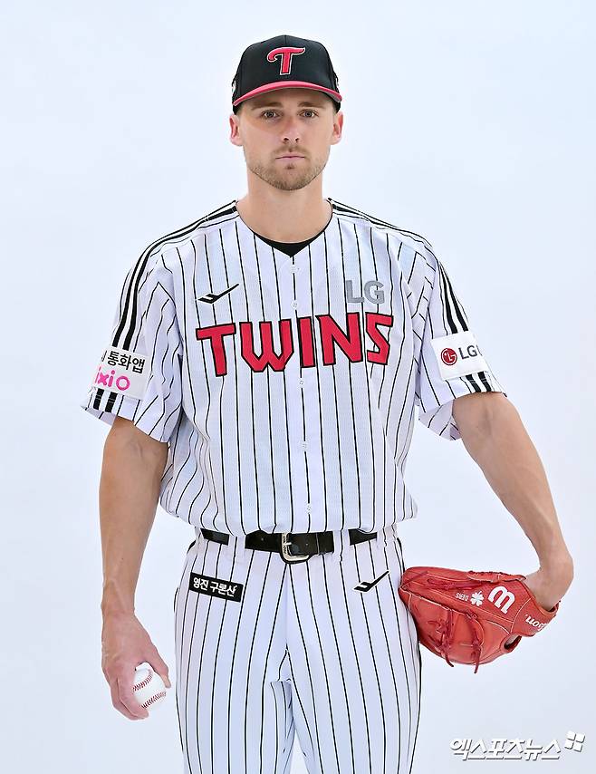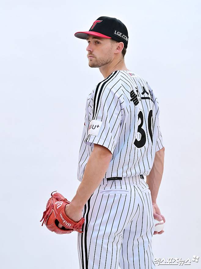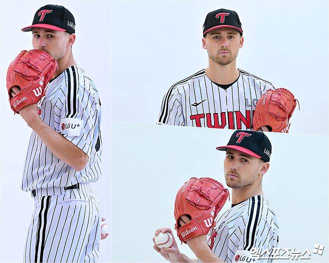 10일 서울 송파구 잠실야구장에서 열리는 2025 신한 SOL Bank KBO리그 한화와 홈경기를 앞두고 LG 트윈스의 새 외국인 투수 톨허스트가 프로필 촬영이 진행됐다.