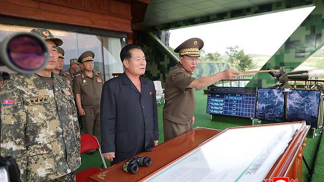 조선중앙통신은 박정천 당중앙군사위원회 부위원장이 훈련을 참관했으며, 리영길 총참모장이 동행했다고 전했습니다.