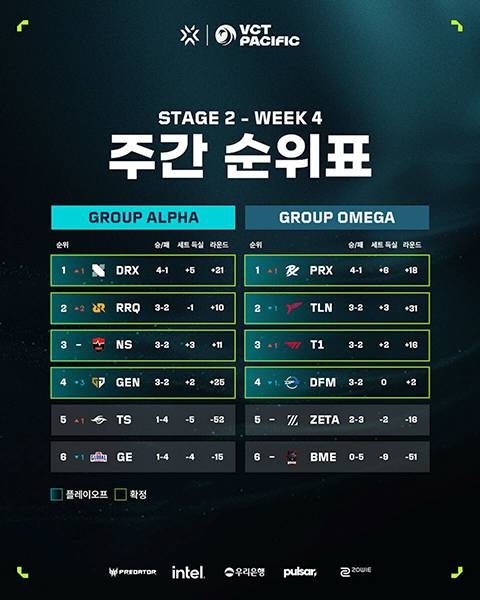 VCT 퍼시픽 스테이지 2 플레이오프는 오는 8월 13일(수) 개막한다. 각 조의 1위 팀은 플레이오프 2라운드에서 시작하며 4위 팀은 하위조 1라운드부터 경기를 치른다. 2위 팀은 반대 조의 3위 팀과 상위조 1라운드에서 맞붙는다.