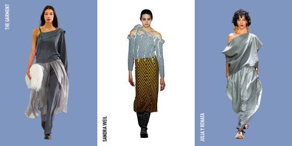 완벽한 대칭이 미덕이던 시대는 지났다. 한쪽 어깨를 드러낸 원 숄더 디자인이 비대칭의 미학을 설파하며 당당히 무대에 올랐으니까. 먼저 루이비통은 반듯한 터틀넥 톱에 오버사이즈 스웨터를 겹쳐 입고, 어깨선을 흘러내리듯 연출해 여유로운 무드를 더했다. 산드라웨일은 컷아웃 디테일이 가미된 니트 스웨터로 어깨 라인을 강조했고, 더가먼트와 줄리아이레나타는 흐르듯 떨어지는 회색 원 숄더 블라우스에 슬랙스를 매치해 도회적인 분위기를 가득 채웠다. 아방가르드의 정수를 보여준 앤소피매드슨은 여성의 곡선미를 살린 섬세한 드레이핑의 드레스를 피날레에 세우며 트렌드에 방점을 찍었다. 이번 시즌 디자이너들은 입을 모아 말한다. 한쪽 어깨를 슬쩍 내리는 것이 그 어떤 직접적인 노출보다 더 세련된 방식이라고.