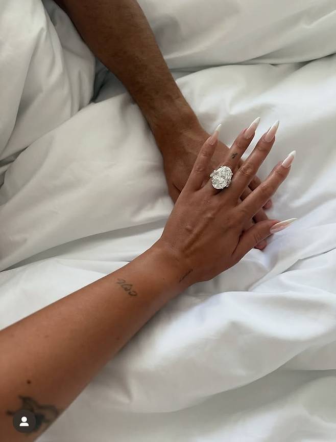 조지나는 반짝이는 다이아몬드 반지를 낀 자신의 손을 호날두의 손 위에 얹힌 사진을 공개하며 "네, 원해요. 이번 생과 모든 생에서"라는 글을 적었다.