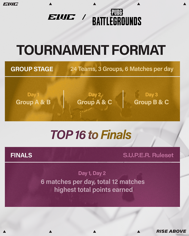배틀그라운드는 EWC의 24개 정식 종목 중 하나로 채택되었으며, 배틀그라운드 종목에만 총 200만 달러의 상금이 걸려있다. 우승팀은 65만 달러(원화 약 9억 원)라는 막대한 상금을 거머쥐게 된다. 전 세계 e스포츠 팬들의 이목이 리야드로 쏠리는 이유다.