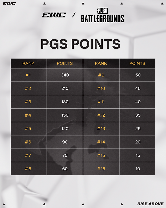 대회 최종 순위 상위 16개 팀에게는 PGC 진출에 필요한 'PGS(펍지 글로벌 시리즈)' 포인트가 차등 부여된다. 1년 동안 누적된 PGS 포인트 상위 8개 팀은 지역 리그 성적과 관계없이 PGC에 직행하는 막강한 혜택을 받는다. 선수들에게는 우승 상금만큼이나 PGC 직행 티켓의 향방이 절실한 상황이다.