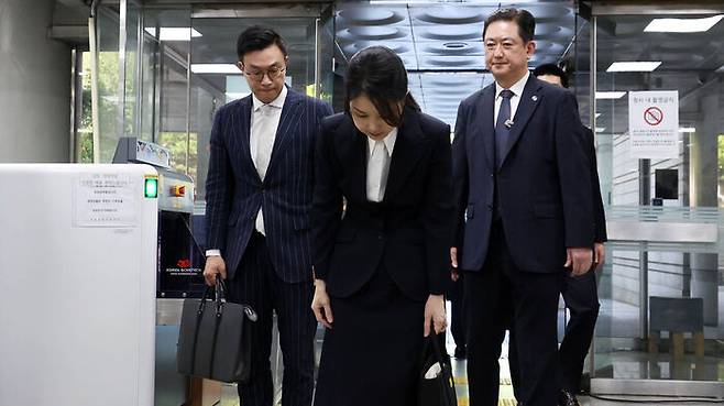 심사 장소로 이동하는 동안 한 차례도 고개를 들지 않은 김 여사는 취재진이나 경호 인력 등과도 눈을 마주치지 않으려 바닥만 바라봤습니다.