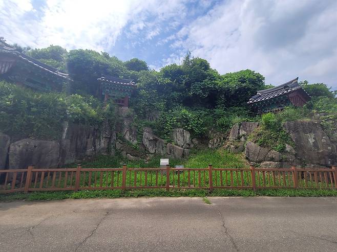 | ▲ 삼충각 유성증 목사(1640.4~10 재임)의 인화비 |