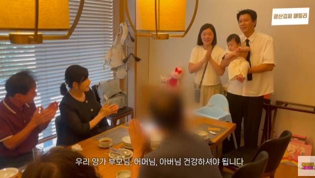 이후 김승현 부부는 양가 부모님과 함께 식사를 했다. 김승현은 "리윤이를 위해 건배사 하겠다. 첫돌 축하해주러 와주셔서 감사하고 리윤이가 앞으로 행복하고 건강하게 잘 자랄 수 있도록. 리윤아 축하해!"라고 인사했다.