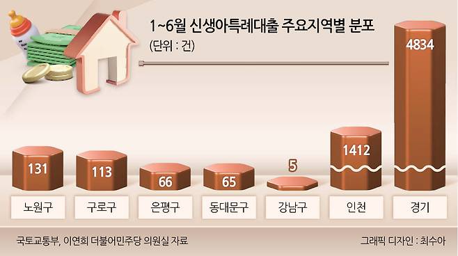 신생아특례대출을 받은 차주의 셋 중 하나는 경기도에 '내 집 마련'을 하는 것으로 나타났다.