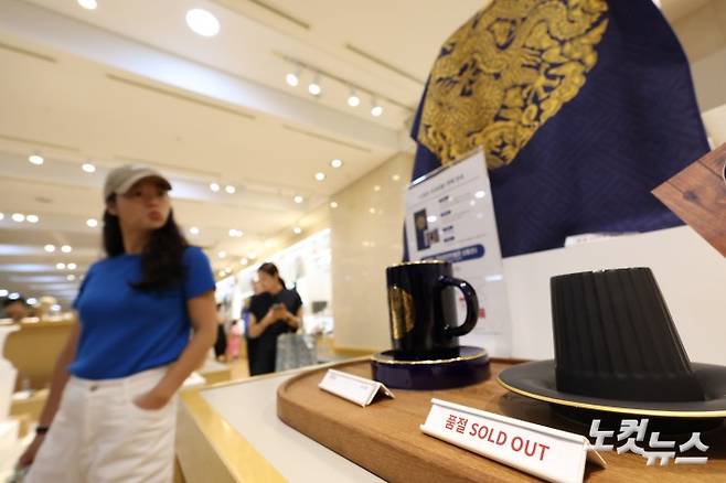 최근 '케이팝 데몬 헌터스' 등 K-콘텐츠의 흥행과 여름방학 극성수기가 맞물리며 국립중앙박물관을 찾는 관람객이 크게 증가한 가운데 11일 오전 서울 용산구 국립중앙박물관 공식 굿즈 매장 '뮷즈샵'에 상품들이 매진 문구가 붙어 있다.