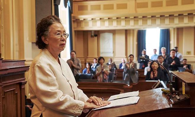 오는 13일 재개봉하는 영화 '아이 캔 스피크'는 위안부 이야기를 다루며 많은 이들에게 감동을 선사했다. 작품은 20년 동안 민원 8000여 건을 제기해 온 옥분(나문희)이 1년 차 원칙주의자 공무원 민재(이제훈)를 만나 영어를 배우면서 시작된다. 곧 할머니가 영어를 배우려는 이유가 드러나고 미국 의회 청문회에서 위안부 역사를 증언하는 장면까지 이어진다.