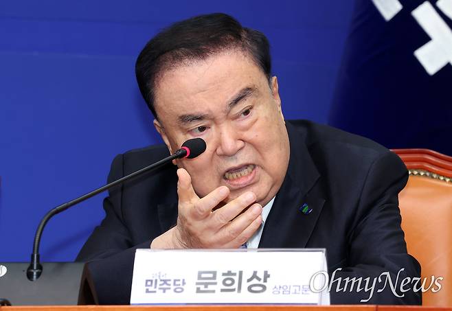 | ▲ 문희상 더불어민주당 상임고문이 12일 서울 여의도 국회에서 열린 상임고문단 간담회에서 정청래 대표에게 고언을 하고 있다. |