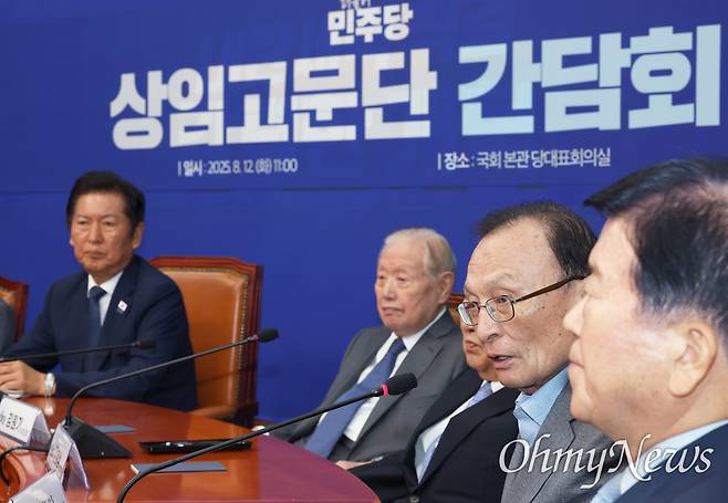 12일 국회 민주당 당대표 회의실에서 진행된 더불어민주당 상임고문단 간담회에는 정청래 당대표를 비롯해 전직 국회의장·당대표 등으로 구성된 상임고문단이 참석했다.