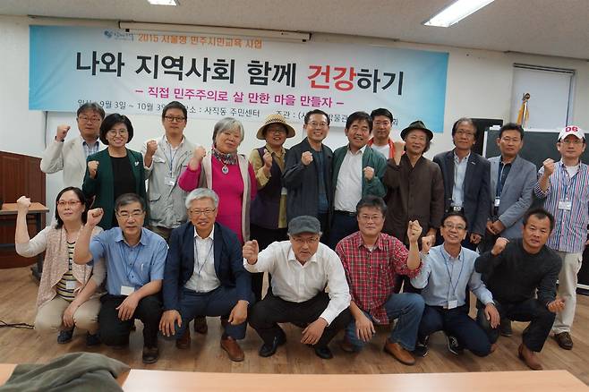 | ▲ 2015년 민청련동지회 회원들과 시민교육 활동을 하던 당시의 백완승 |