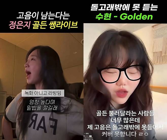 정은지의 짧은 '골든' 커버에는 '정은지가 혼문지기를 맡으면 대한민국은 악귀 걱정이 없다' '마이크도 없이 라이브로 부르는데 이 정도라니. 더 보고 싶다' 등의 반응을 보였다.