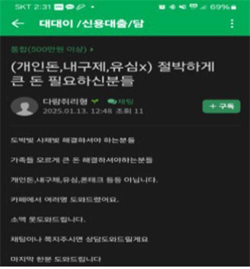 금감원에 따르면 30대 브로커 A 씨는 온라인 대출 카페에 '절박하게 큰돈이 필요하신 분들', '대출' 등 광고 글을 게시해 일반인을 모은 뒤 온라인 상담 과정에서 이들에게 보험사기를 제안했습니다.