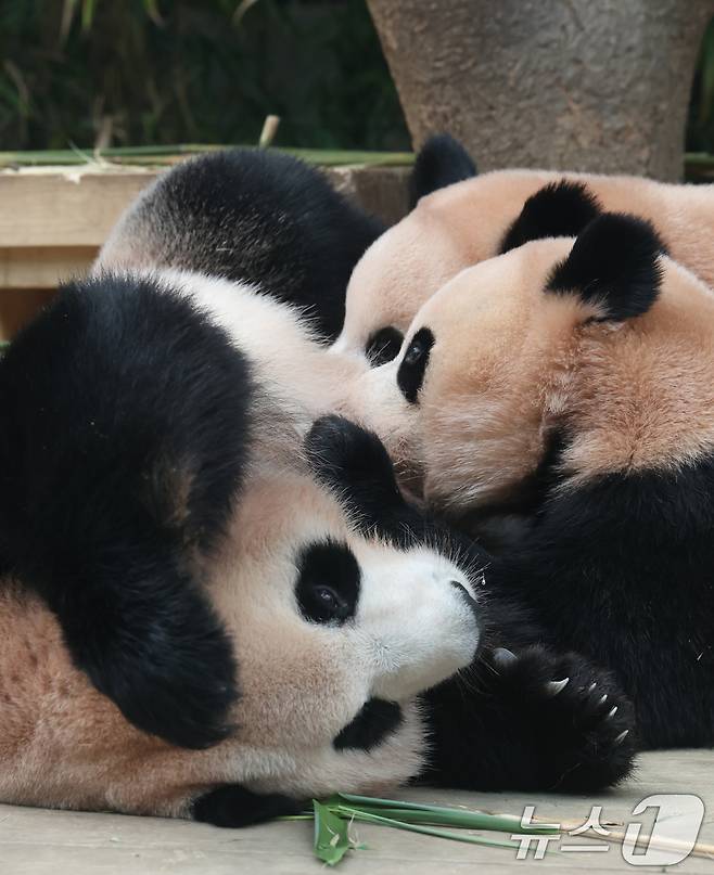 13일부터는 에버랜드 판다월드에서 오전에는 엄마 아이바오를, 오후에는 쌍둥이 판다의 귀여운 모습을 만나볼 수 있으며 오는 9월 새롭게 오픈하는 판다 세컨하우스에서는 루이바오와 후이바오가 적응 기간을 마치는대로 일반에 종일 공개될 예정이다. 2025.8.12/뉴스1