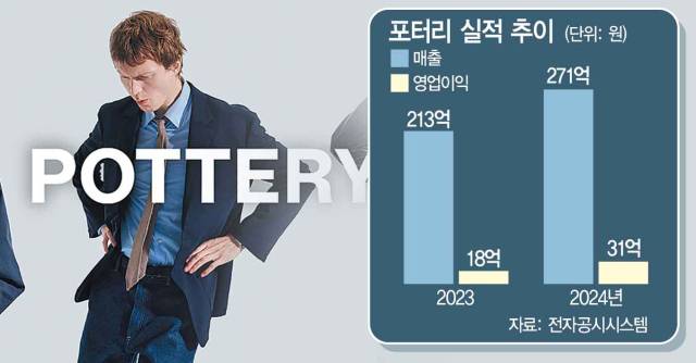 2021년 출범한 포터리는 20~40대 남성을 겨냥한 비즈니스 캐주얼로 인지도를 얻었다. 김건우 포터리 대표가 회사 지분 100%를 보유 중이다. 거래가 종결되면 김 대표 지분은 40% 정도로 줄어든다. 지분 매각 후에도 김 대표는 회사에 남아 경영을 책임질 것으로 보인다. 포터리의 지난해 매출은 271억 원, 영업이익은 31억 원이다.