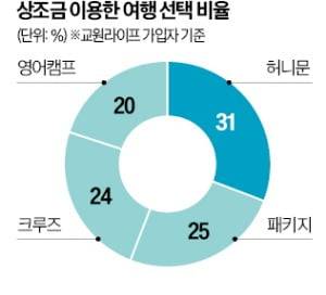 전환 상품을 선택한 고객 중 58%는 여행비로 썼다. 여행지 중 인도네시아 발리(30%)가 가장 인기를 끌었고 말레이시아(15%), 서부 지중해(14%), 서유럽(7%), 필리핀(7%) 등이 그 뒤를 이었다. 여행 유형별로는 신혼여행(31%)이 1위였고 패키지(25%), 크루즈(24%), 영어캠프(20%) 순이었다.