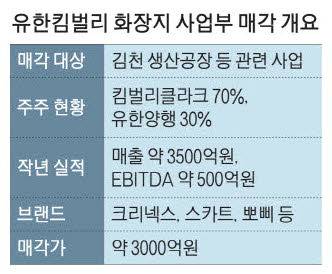 유한킴벌리 대주주인 글로벌 개인용품 제조 기업 킴벌리클라크가 국내 화장지 사업부 분할 매각(카브아웃)을 추진하고 있다.