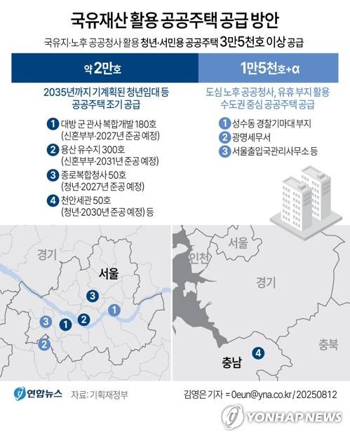 (세종=연합뉴스) 송정은 기자 = 정부가 서울 목동과 성수동 등 수도권 도심 역세권에 노후 공공청사, 유휴 부지를 활용해 공공주택 1만5천호를 추가 공급한다. 기존 2035년까지 계획된 2만호와 합해서 전국에 3만5천호 이상을 공급할 계획이다.