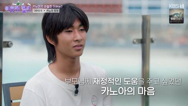 카노아는 "대회 준비하느라 열심히 훈련했는데, 취소되니까 힘이 빠졌다"라고 토로했다. 그는 "엄마를 도와주고 싶어서 대회 상금을 받고 싶었는데, 대회가 취소돼서 아쉬웠다"라고 속내를 전했다.