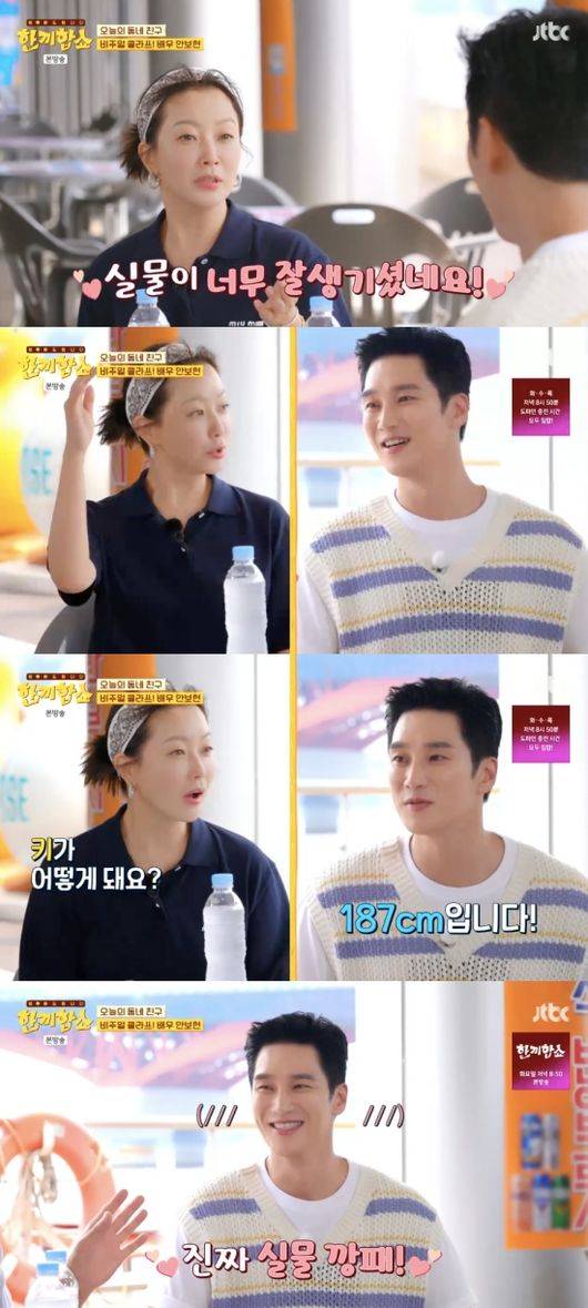 김희선은 안보현에 대해 “실물이 너무 잘생겼다. 키가 (정말 크다). 실물 깡패다”라고 감탄했다. 탁재훈은 운동을 해서 몸도 좋다고 덧붙였다.