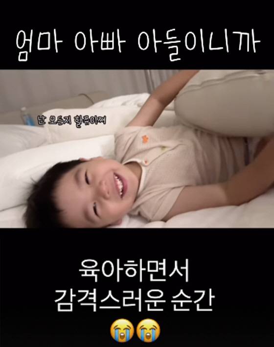 제이쓴은 "엄마 아빠 아들이니까"라면서 "육아하면서 감격스러운 순간"이라며 감격했던 당시를 떠올렸다.
