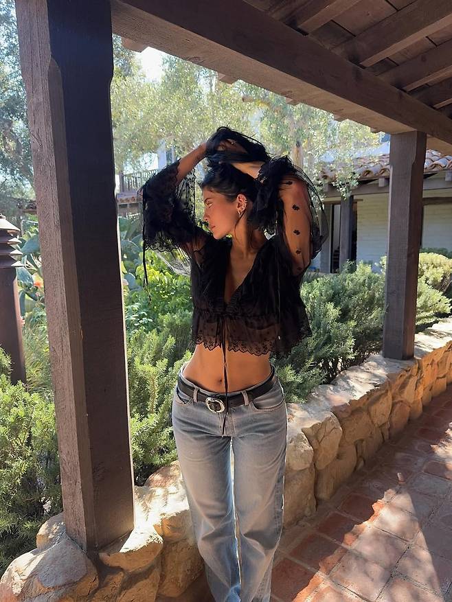 어느덧 27살이 된 카일리제너가 성대한 생일 파티 를 열었습니다. 핫걸에게는 1년 중 가장 큰 이벤트에 카일리가 선택한 건 단연 블랙이었죠. 로맨틱한 도트 패턴이 돋보이는 보헤미안 무드의 블랙 시스루 블라우스에 라이트 워시드 데님 진과 실버 버클 벨트를 매치해, 과감하면서도 여유 있는 룩을 완성했군요. 블랙의 농도를 시스루로 조절한다면 한여름에도 블랙을 시원하게 즐길 수 있답니다!