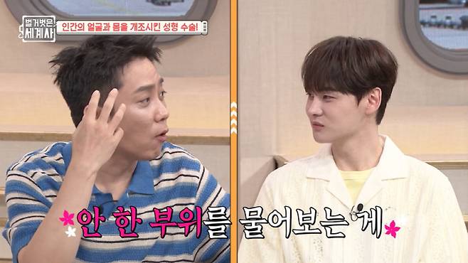 이에 은지원은 "하도 본인이 성형 관련 말씀을 많이 하고 다니셔서 여쭤 보겠다. 어느 부위를 성형했냐"고 물었고, 박서진은 "안 한 부위를 물어보는 게 빠를 거다"고 말해 웃음을 안겼다.