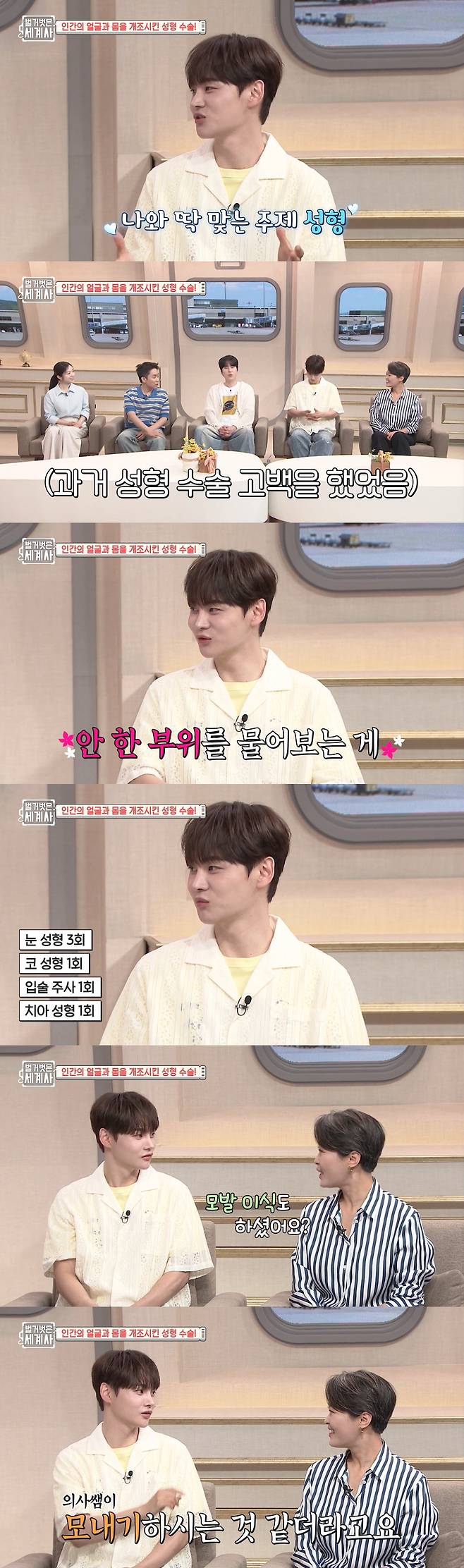이어 박서진은 "눈 3번 했다. 코도 하고 입술, 치아 성형도 했다. 모발 이식도 했다"면서 "모발 이식하는 데 신기하더라. 뒤에서 끌어다가 앞에 심었다. 모내기 하는 것 같았다"고 해 폭소를 자아냈다.