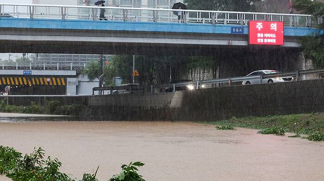 ▲ 강한 비가 내리는 13일 서울 서대문구 증산교 하부도로가 전면 통제되고 있다.