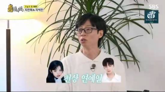 이를 들은 유재석은 "맞다. 같은 동료인데 진짜 '천상 연예인'이라고 생각이 드는 사람이 있다. 요즘엔 장원영, 차은우 씨가 그런 것 같다"고 말했다. 그러자 지석진은 유재석에게 "너는 참, 어쩌다 연예인이 됐니?"라면서 갑자기 돌직구를 날렸다.