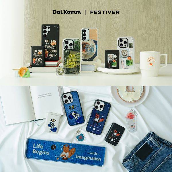 페스티버는 달콤커피와의 협업을 통해 더 나은 삶을 위한 충전의 의미를 제품 디자인에 담았다. 출시 품목은 맥세이프 라인업으로 폰케이스부터 카드지갑, 보조배터리가 있으며, 그 외 활용도가 높은 아크릴 키링과 팜레스트도 포함된다.