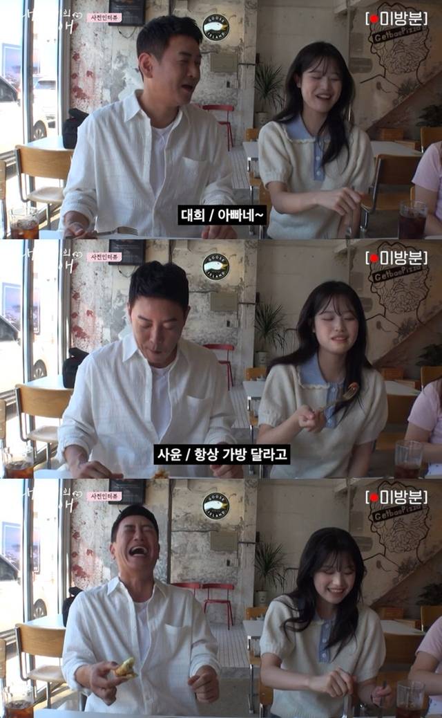 사윤 양은 김대희가 사랑꾼이라고 밝히기도 했다. 사윤 양은 "항상 가방 달라고 한다"고 평소 김대희의 모습을 소개했다.