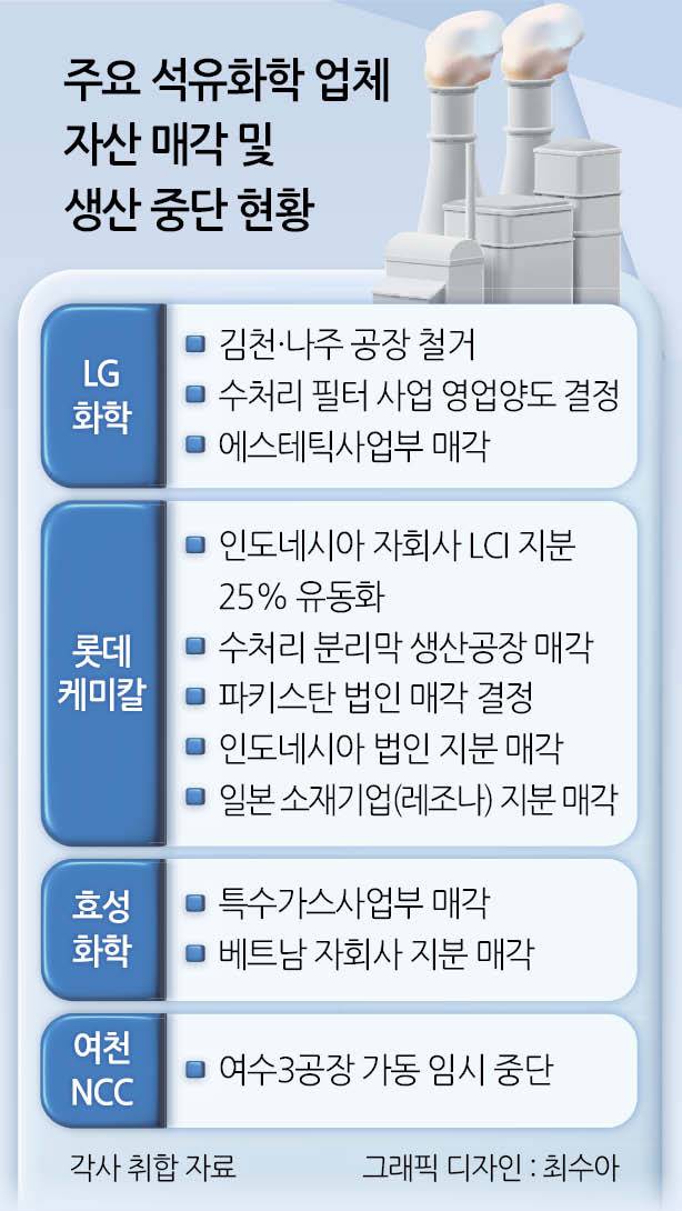 석화기업들은 생존을 위해 사업구조 대수술도 벌이고 있다. LG화학은 에스테틱 사업부, 수처리 필터(워터솔루션) 부문의 매각을 결정했다. LG화학 워터솔루션 사업부는 매년 수백억원 이익을 가져오는 캐시카우였다. 지난해에는 청주 공장 증설로 5년 내 사업 규모를 2배로 키운다는 목표도 제시했지만 그룹 차원의 선택과 집중을 위해 정리하기로 했다.