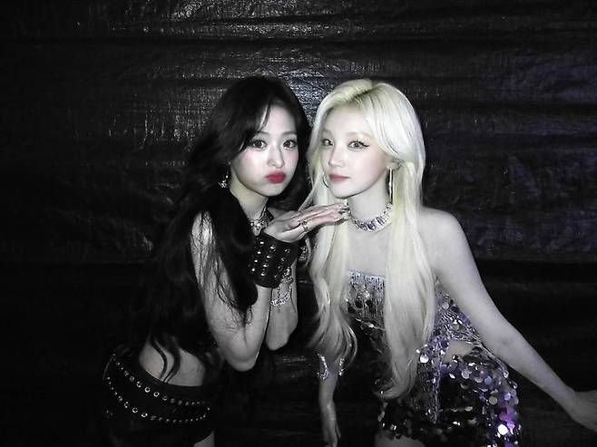 이어 우기는 그룹 베이비몬스터 아현과 함께 찍은 투샷을 공개했다. 브이 포즈를 취한 두 사람은 강렬한 눈빛을 유지하면서도 따뜻한 분위기를 자아낸다.