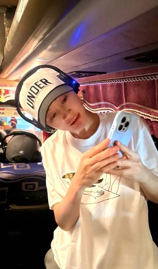 다른 사진에는 편안한 티셔츠와 모자, 헤드폰을 착용한 김혜수가 촬영 현장 속 기념샷을 남기며 집중하는 모습도 담겼다.