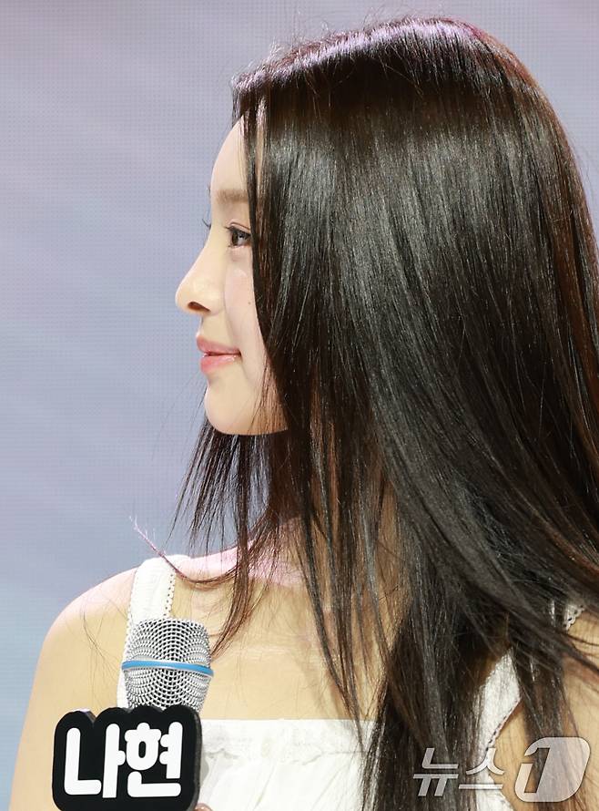 (서울=뉴스1) 권현진 기자 = 그룹 앳하트(AtHeart) 나현이 13일 서울 한남동 블루스퀘어에서 가진 첫 번째 EP 'Plot Twist' 쇼케이스에서 포즈를 취하고 있다. 2025.8.13/뉴스1