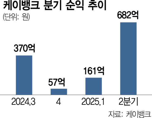 케이뱅크는 올 2분기 순이익 682억 원을 기록했다고 13일 밝혔다.