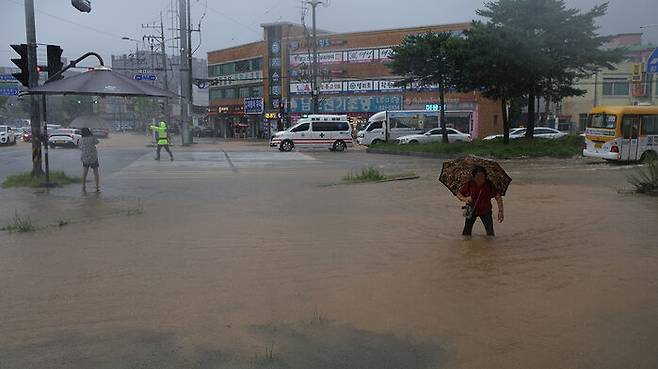 ▲ 수도권에 집중호우가 쏟아진 13일 경기도 의정부시에서 도로가 침수되어 있다.
