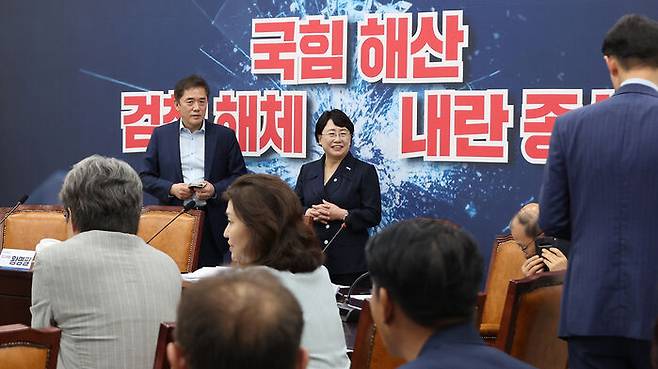 황현선 사무총장은 당무위 회의 후 취재진 앞에서 "김선민 대표 권한대행을 비롯한 최고위원 전원의 임기 단축을 결정했다"고 당무위 논의 내용을 전했습니다.