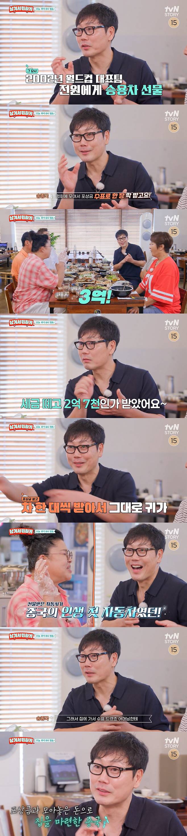 13일 tvN STOR '영자와 세리의 남겨서 뭐하게' 측은 "자동차 한 대와 수표 1장. 2002년 월드컵 대표팀이 받은 그 시절 파격 포상 혜택 ㄷㄷ"라는 제목의 선공개 영상을 공개했다.