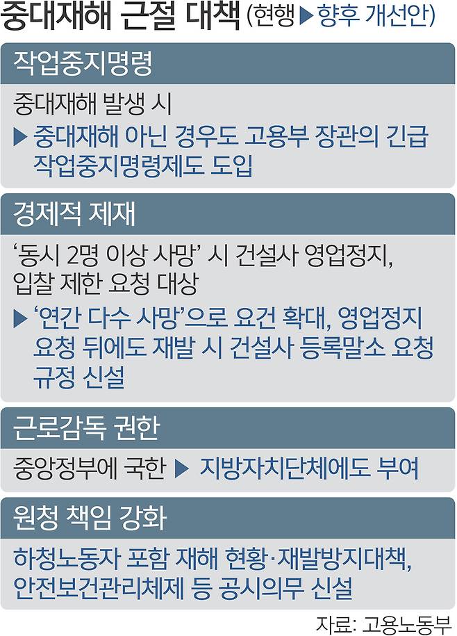 현재 중대재해가 발생할 시 발동되는 작업중지명령제도 요건도 확대한다.