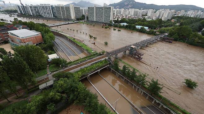 ▲ 집중호우가 내린 13일 서울 노원구 동부간선도로 월계3교 지하차도가 중랑천 물이 범람해 침수되어 있다.