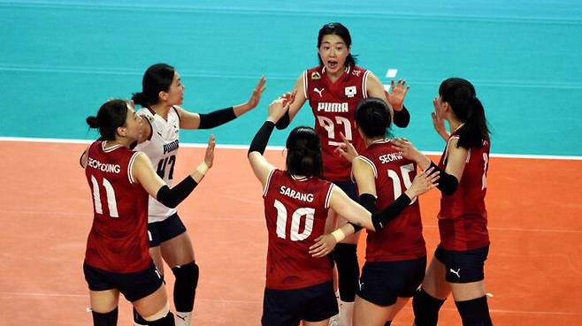 ▲ 득점 후 기뻐하는 한국 여자배구 대표팀 선수들