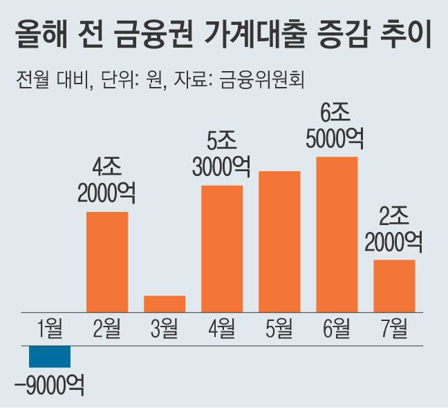 박민철 한은 시장총괄팀 차장은 “6·27 규제 이후 금융권의 가계대출 관리 강화로 규제 시차가 짧은 생활자금 용도 주택담보대출이나 신용대출 등이 크게 줄면서 7월 가계대출 둔화를 주도했다”고 설명했다.