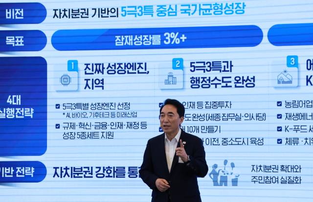 국정위는 국가비전과 함께 5대 국정목표·23대 추진전략·123대 국정과제를 정부에 제안했다. 국가균형성장특별위는 ‘자치분권 기반의 5극3특 중심 국가균형성장 전략’과 이를 뒷받침할 거버넌스·재정·제도 혁신과제를 소개했다.