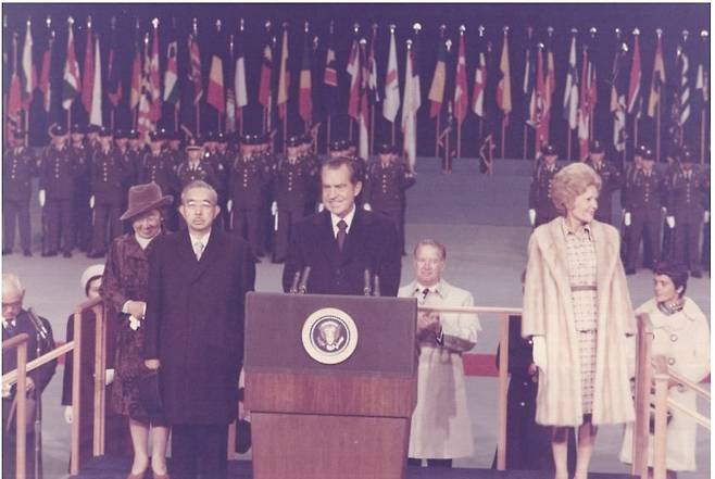1971년 9월 히로히토 천황은 2차 대전 후 처음으로 유럽 순방을 위해 출국하는 길에 앵커리지에 기착을 했고, 닉슨 대통령도 알래스카의 석유 개발 등 현안 문제를 다룰 현지 일정을 만들어서 앵커리지를 방문했다. 한밤중에 엘먼도프-리처드슨 기지 공항에서 의전 행사가 열렸고, 닉슨 부부와 천황 부부는 한 시간 동안 대합실에서 환담을 나눴다.