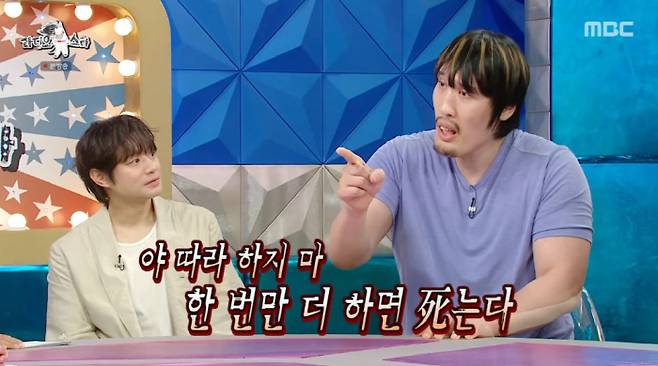 이에 최홍만은 "초반에는 진짜 경고를 줬다. 길거리에서 만나서 장난기 없이 '따라하지 마라. 한번만 더 하면 죽는다'고 했다"면서 "안 하겠다고 약속을 했는데 다음에 또 하더라"고 해 웃음을 안겼다.